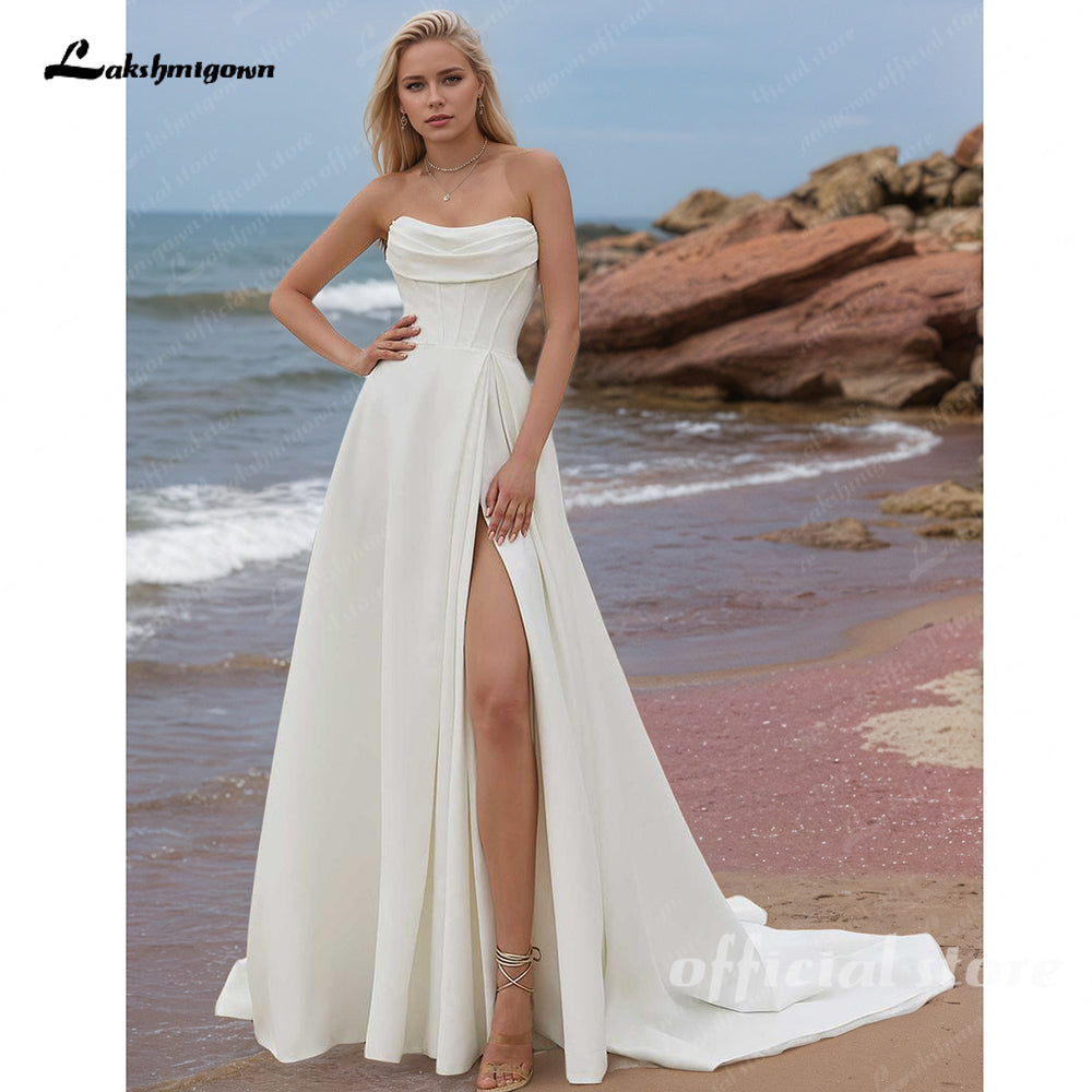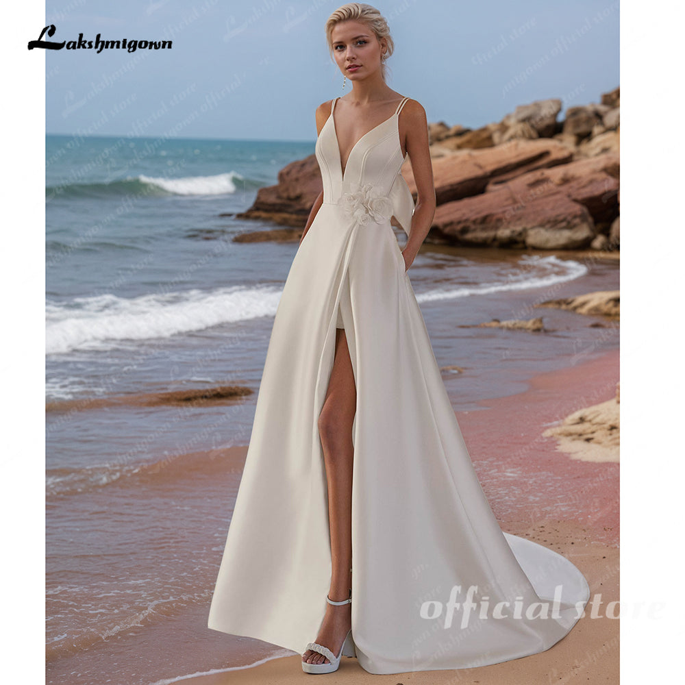 Vestidos de novia de satén con abertura lateral sexy 2025 Vestidos de novia de playa para mujer