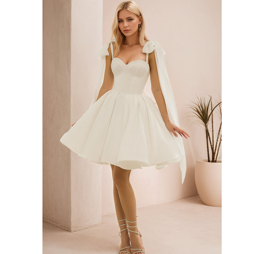Abiti da sposa da donna sexy Mini abiti da festa di nozze a pieghe in raso bianco sporco