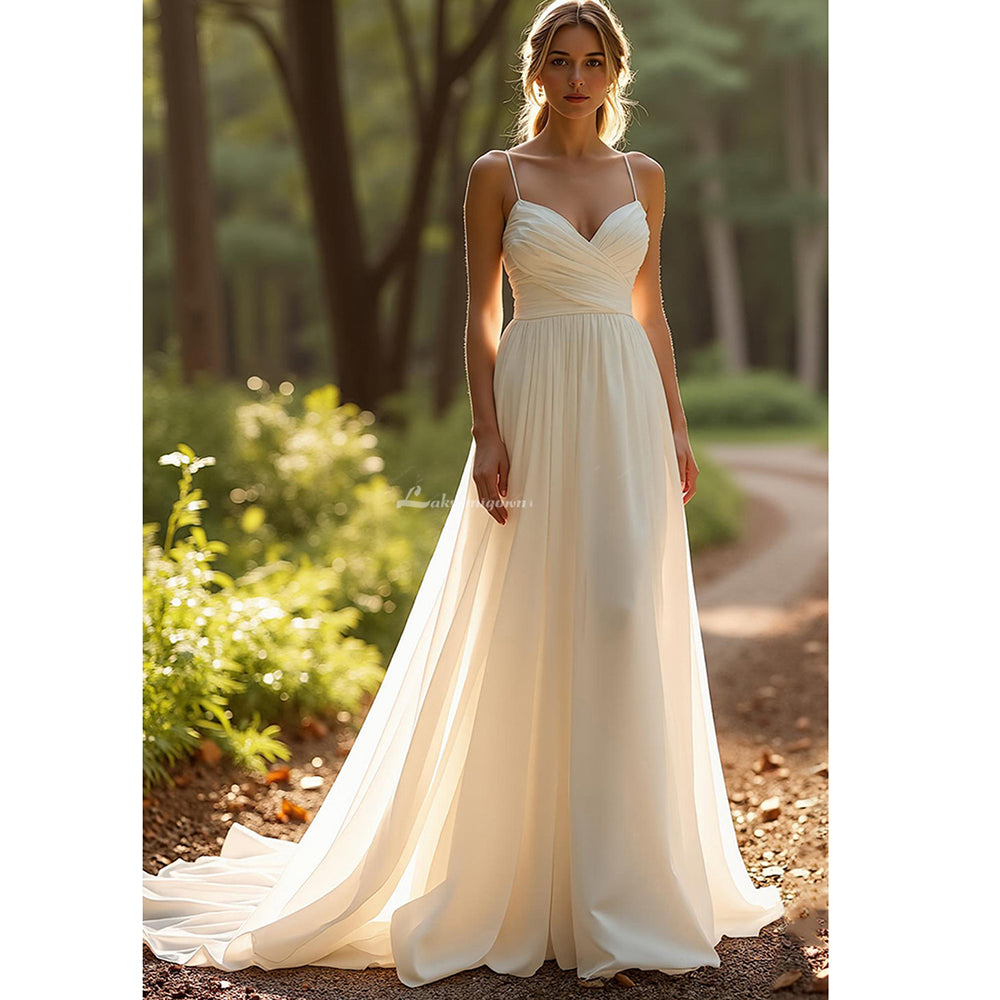 Abito da sposa avorio con spalline sottili in chiffon semplice